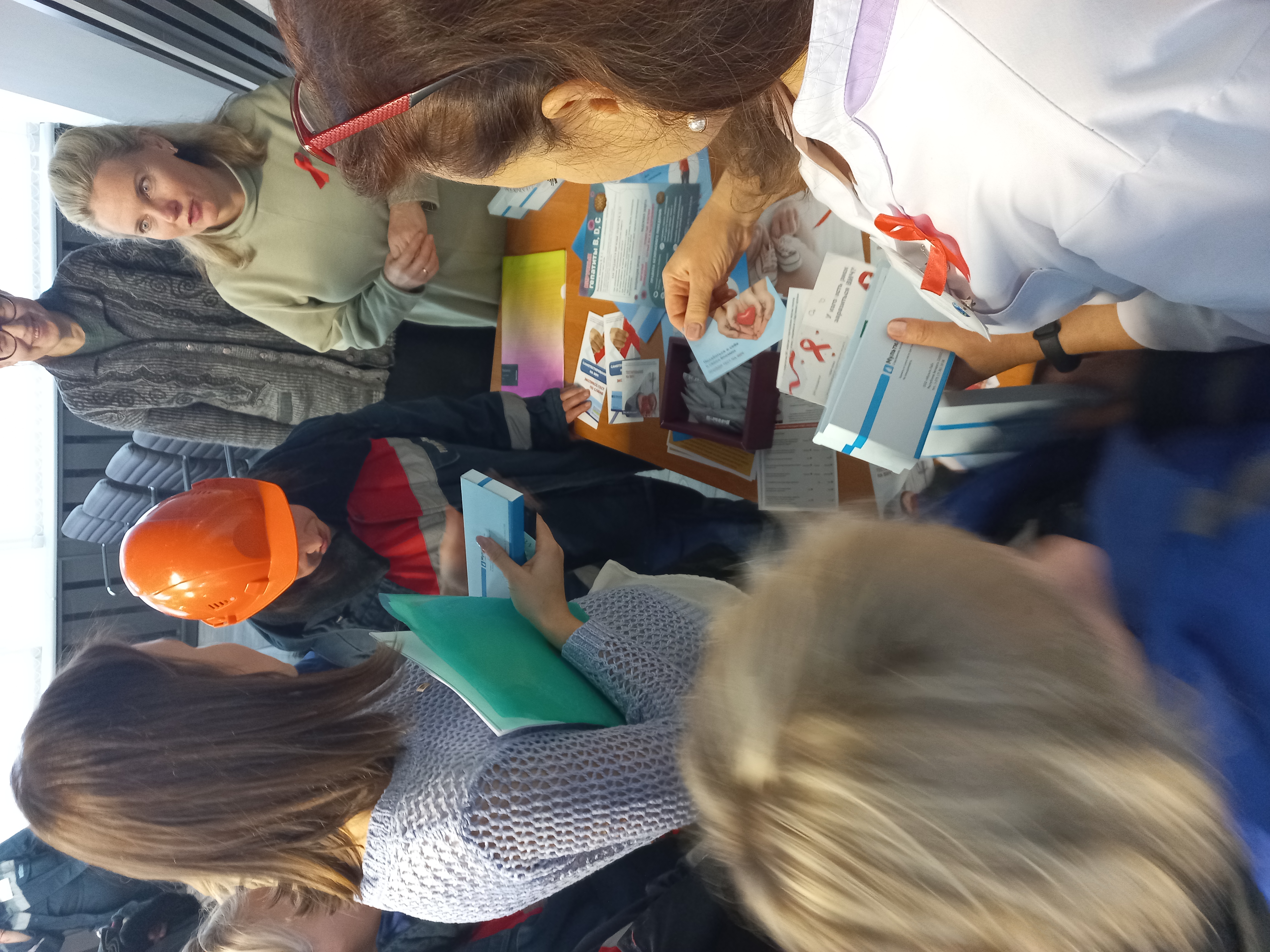 Кроме того, проведена акция «Позаботьтесь о себе и своих близких - пройдите тест на ВИЧ» приуроченной к Всемирному дню борьбы со СПИДом. Заслушана информация помощника врача – эпидемиолога Пирог Н.Н. об эпид.ситуации по ВИЧ-инфекции, парентеральным вирусным гепатитам в г.Новополоцке, проведении профилактической работы по данным заболеваниям. В рамках мероприятия проведено распространение информационно-образовательных материалов по проблеме ВИЧ/СПИД, утвержденных Министерством здравоохранения Республики Беларусь; консультирование по вопросам ВИЧ/СПИДа.