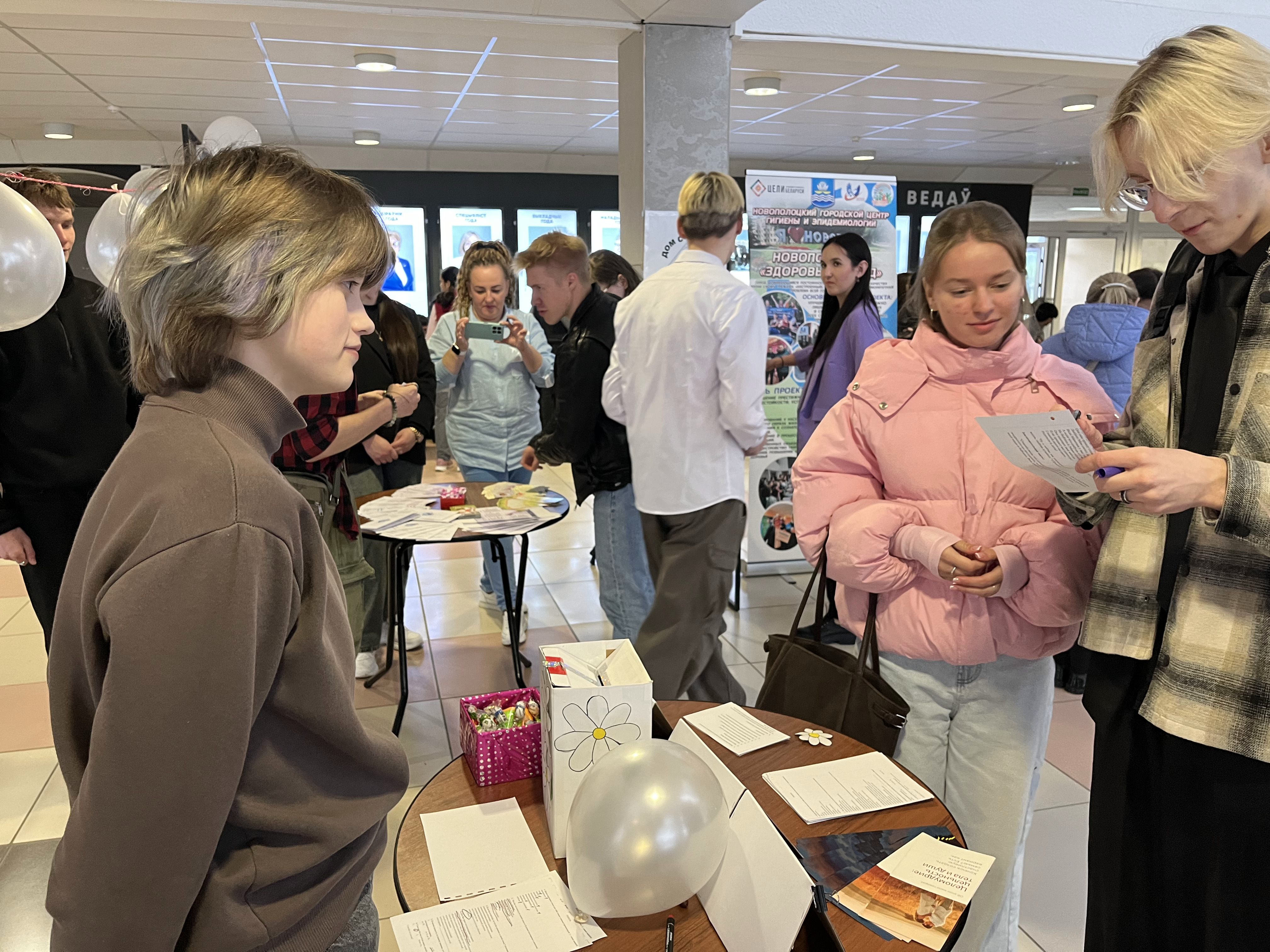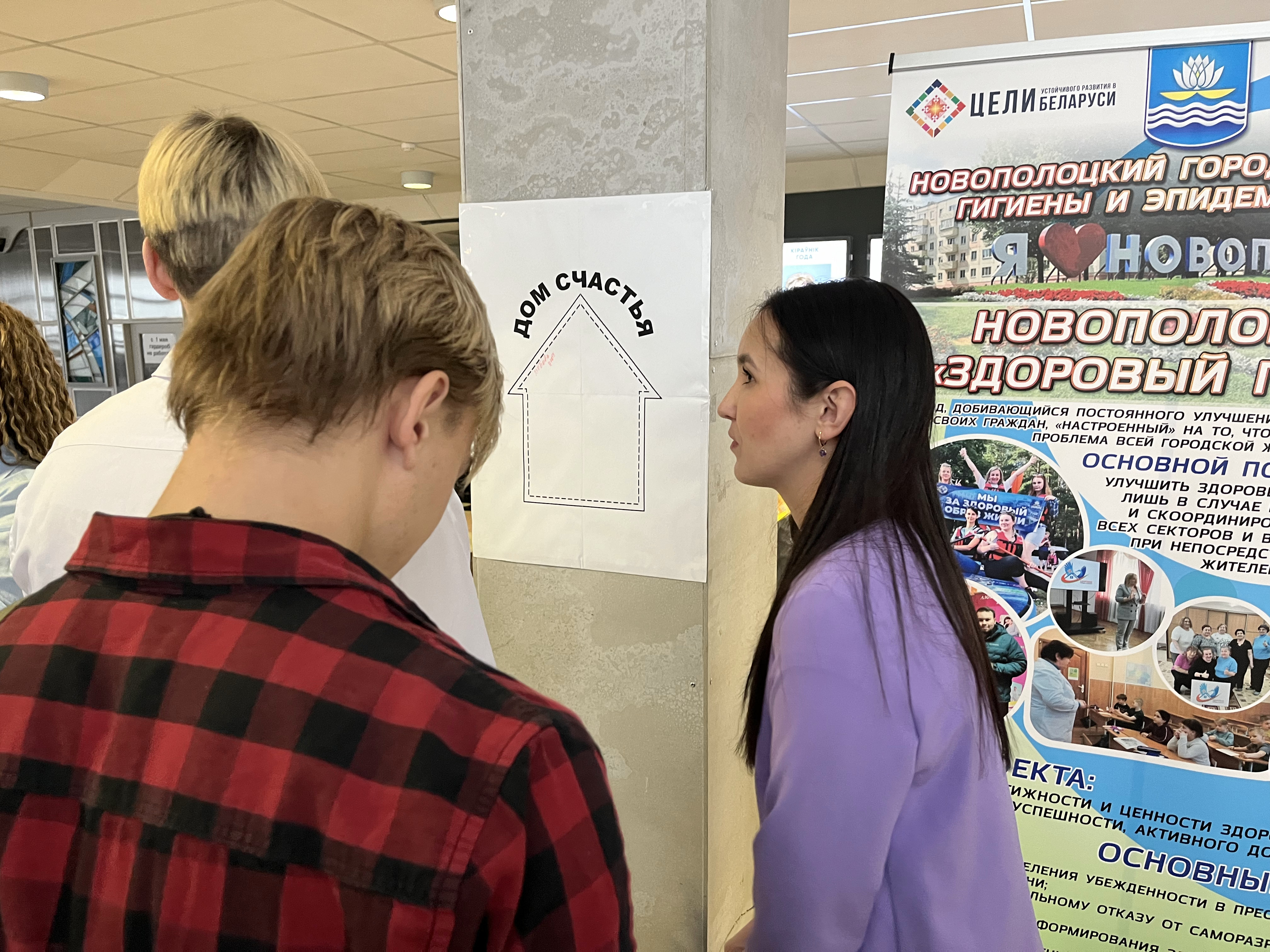 Акция проведена валеологами УЗ «Новополоцкая ЦГБ», сотрудниками ГУ «Новополоцкий центр гигиены и эпидемиологии», психологом фонда поддержки семьи, материнства и детства «Покров». Специалисты предложили студентам мастер-класс по изготовлению белых пионов как символа семьи, любви и верности. С помощью интерактива «Дом счастья» все желающие могли поделиться своим видением счастливых и крепких семейных отношений. Участники акции получили пожелания на тему «Любовь – это …», оформленные в виде свертков. В рамках акции студенты обменялись мнением о своем отношении к браку. Так же была организована выставка полезных материалов о здоровье и семье.
